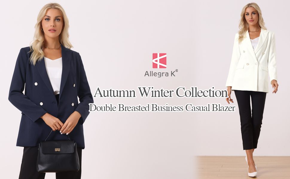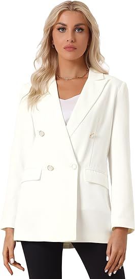 Allegra K Blazer for Women's Business Casual Long Sleeve Lapel Double Breasted Work Office Blazer Jackets