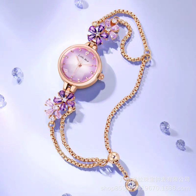 Hot selling violet watch for women, niche, high-end, fashionable, quartz waterproof bracelet decoration watch