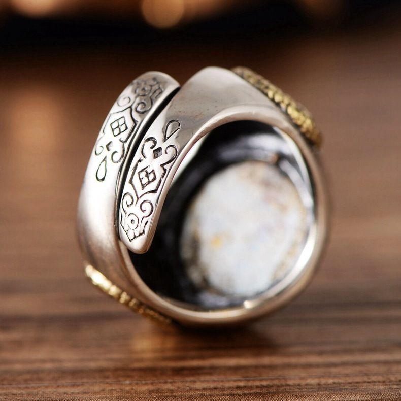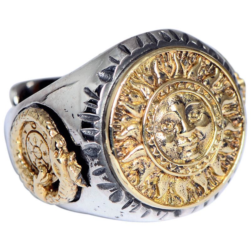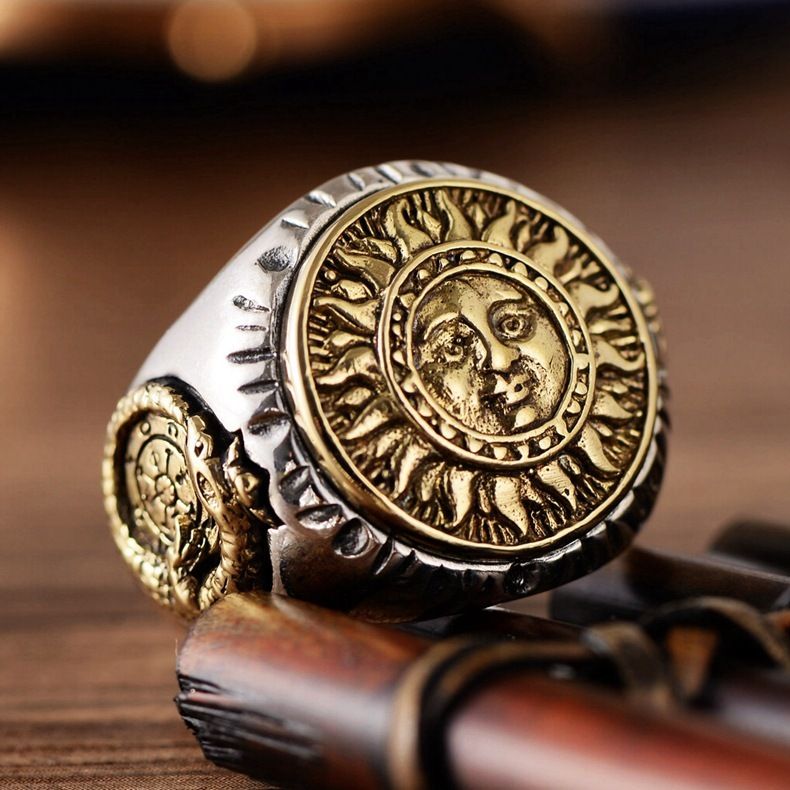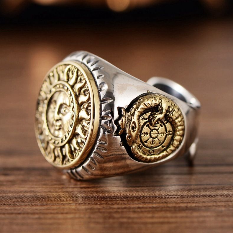 S925 Sterling Silver Ornament Thai Silver SUNFLOWER Smiley Face Domineering Open Ring Men's Exquisite Fashion Retro