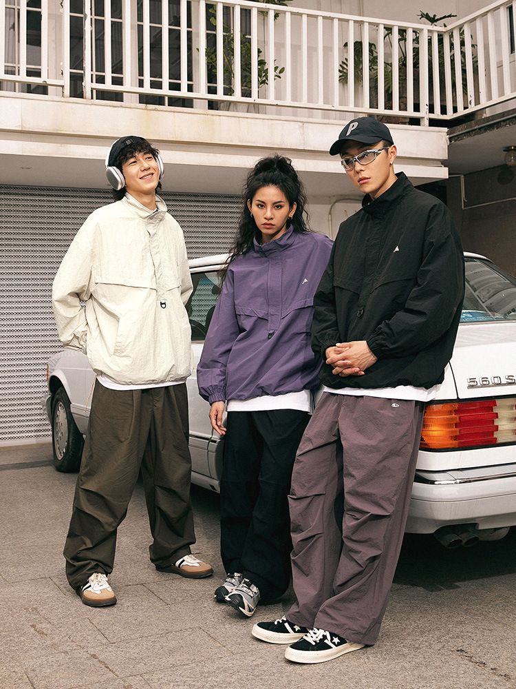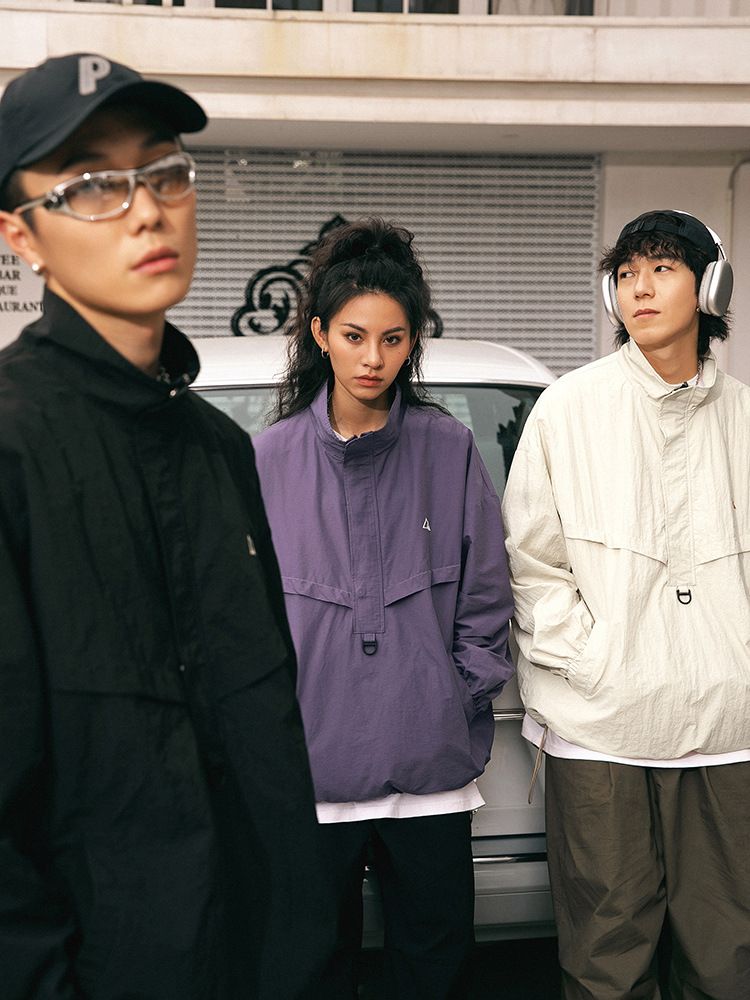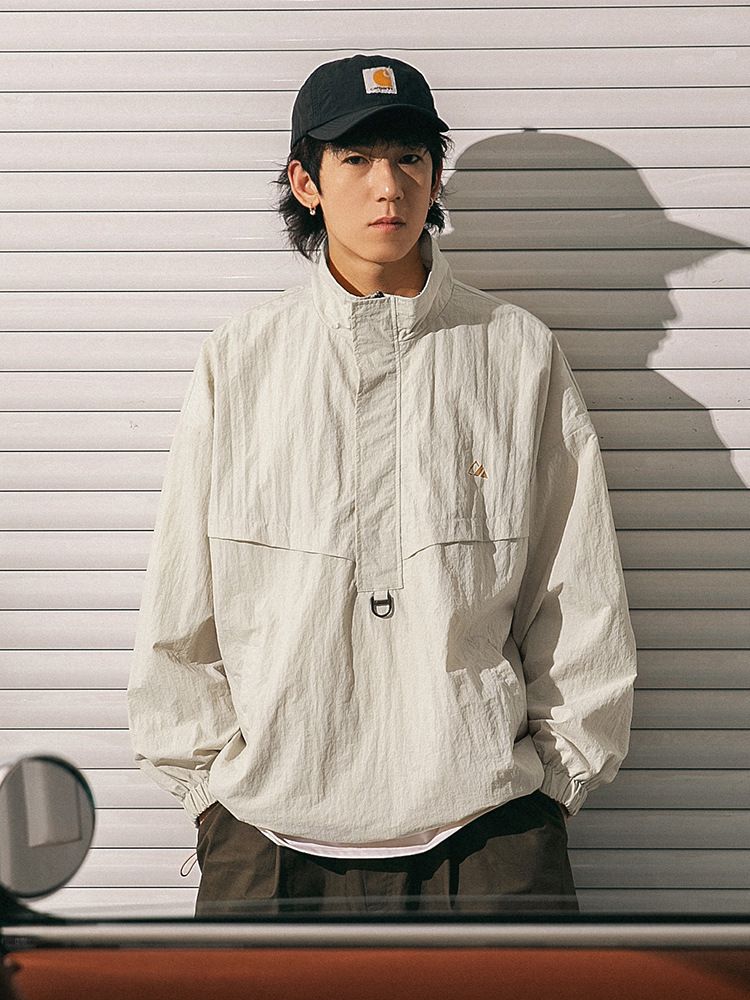 three-proof shell jacket coat men's clothing autumn women's functional texture slightly wrinkled loose couple half zipper fashion brand jacket
